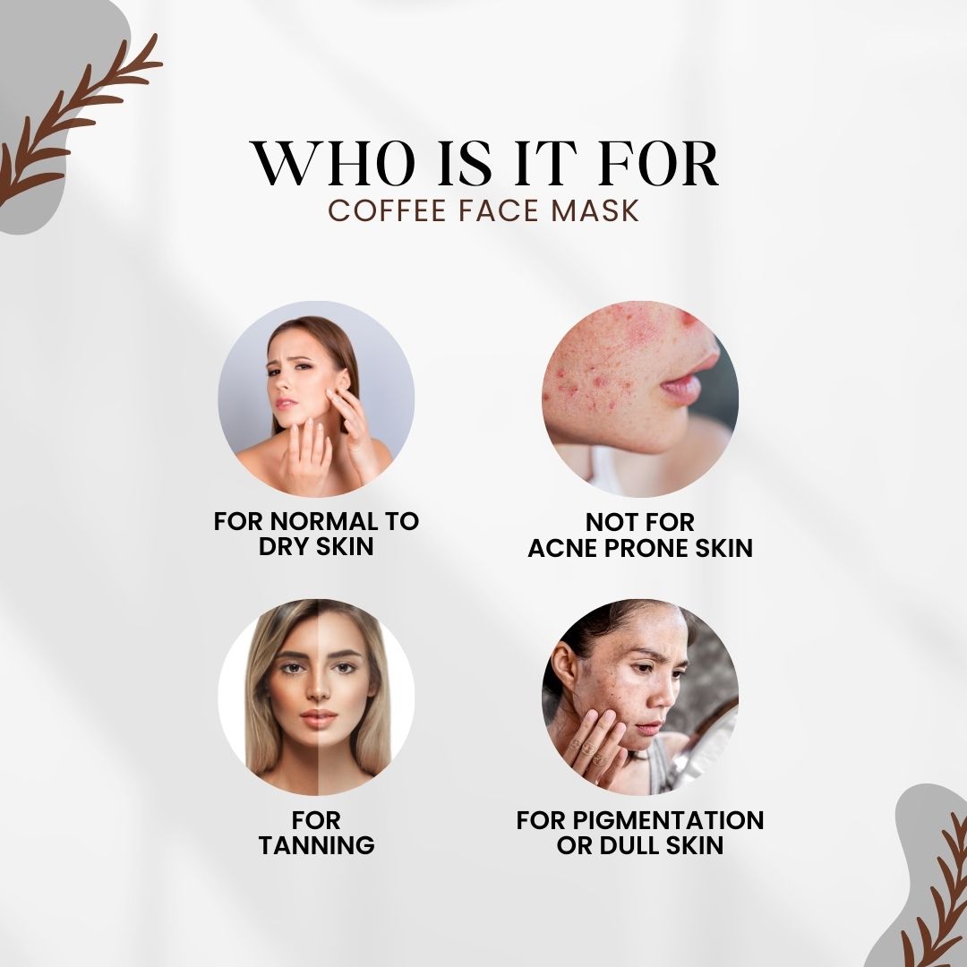 Let the rich aroma of coffee awaken your senses as it gently exfoliates, leaving your skin feeling refreshed and revitalized. Unveil a radiant complexion with our invigorating Coffee Face Mask – nature's secret to a glowing skin.