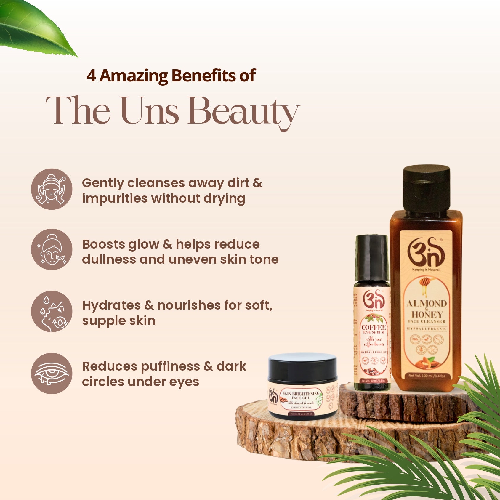 Elevate your skincare routine with our Glow & Brighten 3-Step Skincare Combo – designed to cleanse, brighten, and rejuvenate your skin. Featuring Almond & Honey Cleanser, Skin Brightening Gel, and Coffee Eye Serum, this combo gently removes impurities, boosts glow, hydrates, and reduces puffiness and dark circles for a fresh, luminous complexion.